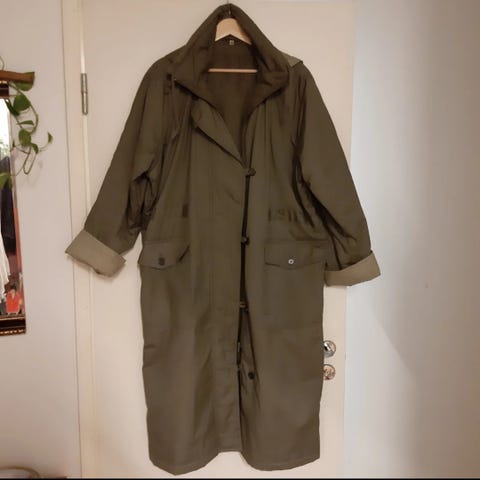 Ihana, lämmin takki isolla hupulla. Karvavuori. Kai-kai n. 58cm. Ei moitteita. Koko XL, mutta vastaa enemmän kokoa L.