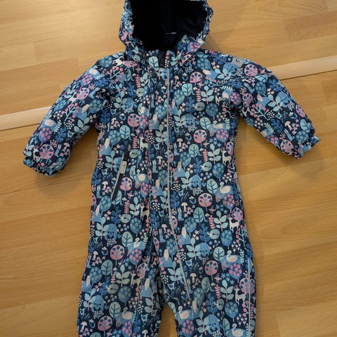 Reiman tummansininen toppahaalari. Hyväkuntoinen, pepussa ja polvissa ei kulumia. Ainut kuluma lahkeessa (siitä kuva), mutta ei läpi asti, eikä vaikuta käyttöön.