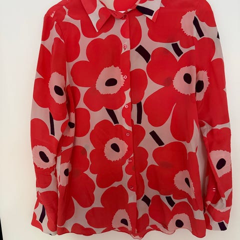 Marimekon hyväkuntoinen silkkipaita koko 40. Kai-kai 55cm ja olka-helma 66cm. Haku Kiulukangas tai postit 8,90€