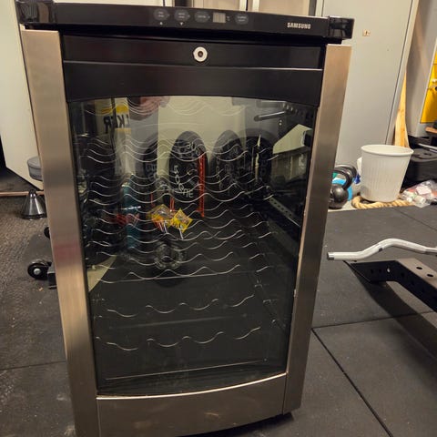 Kaksi vuotta sitten ostettu 12 pullon viinikaappi, joka on nyt jäänyt käyttämättömäksi, koska se ei sovi uuteen asuntoon. Kunnossa ei moittimista.