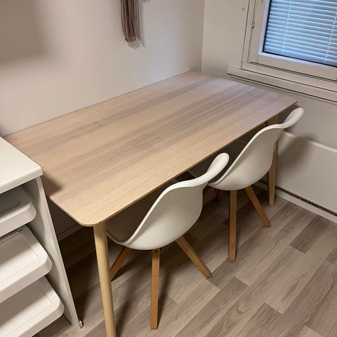 Myydään uuden isomman tieltä Ikean Lisabo-ruokapöytä, koko 140x78. Pöytä on hyvässä käytetyssä kunnossa, ei ole mielestäni juurikaan näkyvää kulumaa ja on tukeva, sekä kauniin yksinkertainen. Tämä ollut huippuhyvä lapsiperheessä - helppo pitää puhtaana, kun tahrat ei nappaa kiinni ja kestää kulutusta! Tämän väri ajansaatossa kauniisti syventynyt, niinkuin ominaisuuksiin kuuluu. Pikainen nouto Itäharjulta etusijalla, puretaan pöytä tarvittaessa. 😊