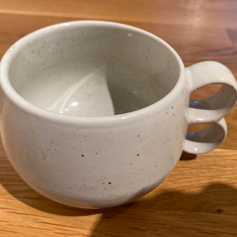 Nyt myynnissä Pentikin Halla-teekuppeja. Tämä on se isompi, kaksikorvainen. Kupin korkeus 7 cm, suuaukon halkaisija 8,5 cm ja teevadin halkaisija on 16cm.