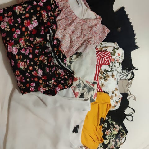 Myyntiin iso kasa pakettina. Villapaitaa, tunikaa, puseroa, mekkoa, hame, shortsit, haalari, puserot..