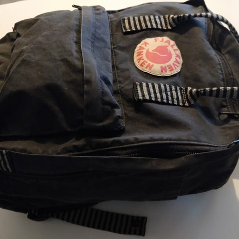 Musta siisti ja ehjä Fjällräven Kånken reppu. Reppu on pesty myyntiä varten. Ainut miinus on, että tuotemerkki on irronnut repun sisäpuolelta (kuva 4).
