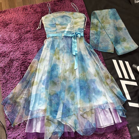 Sininen juhlamekko ja huivi, Dollar, koko S