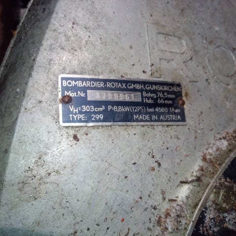 Rotax 503 moottori ilman puolaa ja kaasareita. Kaks äänenvaimenninta.