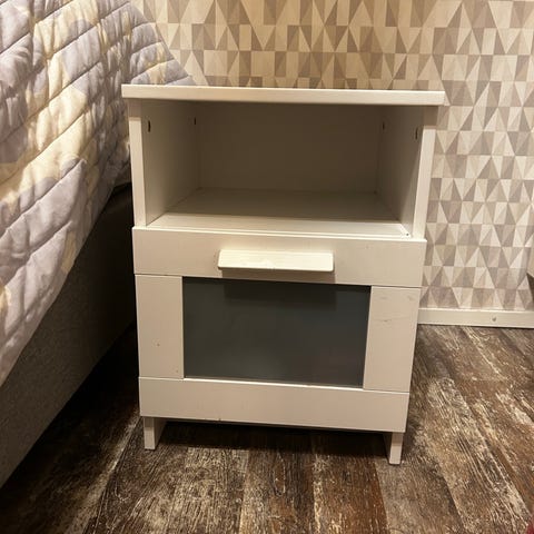 Myydään 2kpl IKEA Hemnes sarjan yöpöytää/sivupöytää. Hieman käytön jälkiä kansilevyjen reunoissa (josta kuva), muuten ovat yleisilmeeltään siistit. Huopatassut lisätty reunoihin kolhujen estämiseksi. Ovat täysin puiset! Ei lastulevyä. Hinta yhteensä 60€.