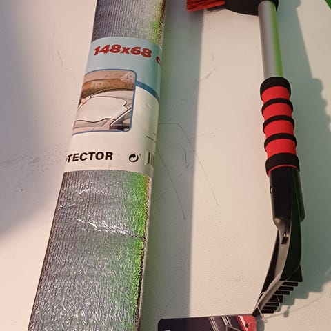 Muovinen lumiharja ja pysäköintikiekko
