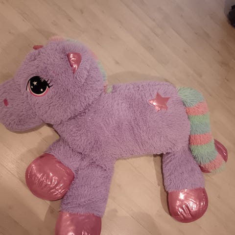 Iso pehmoyksisarvinen, kovasti tykätty, sisäpehmusteet hieman painuneet kasaan selkänojana toimiessaan.