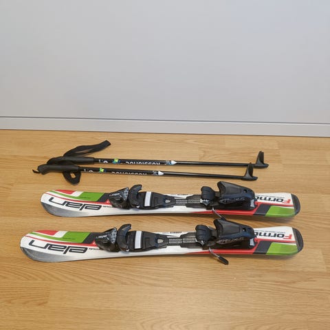 Hyvässä kunnossa olevat Hero sukset seuraavalle laskijalle mukaan 70cm pitkät fischerin sauvat.