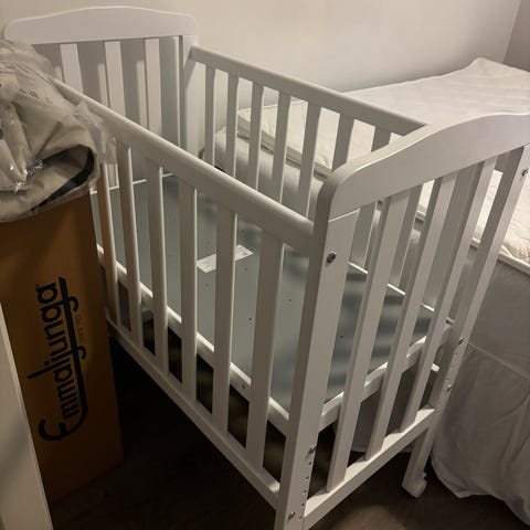 8kk käytössä ollut, uutena ostettu valkoinen ensisänky pyörillä. Sänkyyn kuuluvan patjan saa halutessaan mukaan. Nouto Hatanpää.