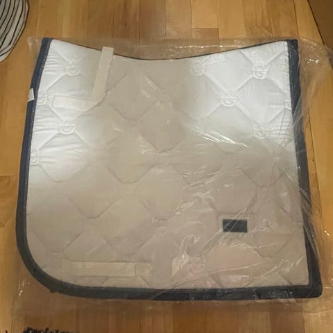 Equstrian stockholm koulu satulahuopa tummansinisessä värissä. Koko full. Satulaan menevät nauhat leikattu irti.
