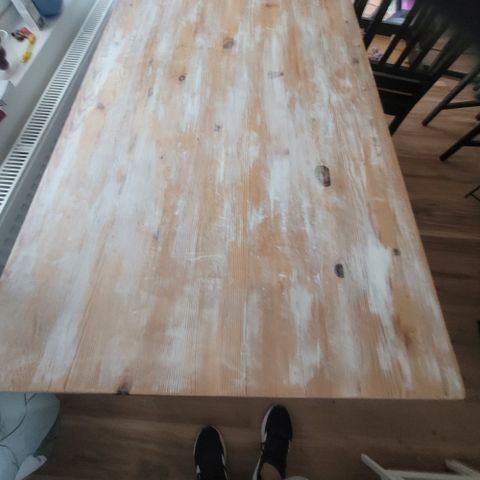 Ruokapöytä, jonka sivut ovat taitettavat. Siisti, yksittäisiä käytön jälkiä näkyvissä.