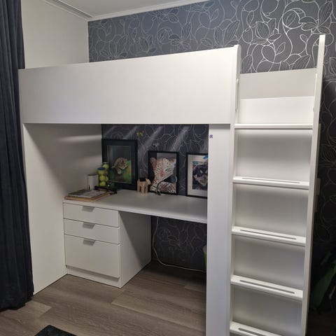 Ikea Småstad parvisänky. Useamman vuoden vanha, joten malli voi olla muuttunut verrattuna nykyiseen uuteen sänkyyn.
