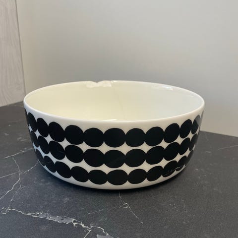 Marimekon mustavalkoinen siirtolapuutarha -kulho.