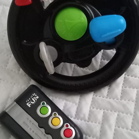 Myydään hauska leluratti, jonka voi kiinnittää monenmerkkisiin rattaisiin (meillä oli Britax). Ratissa on nappuloita, joista saa ääntä ja lyhyttä musiikkia, myös valo vilkkuu. Ääni on pehmeä/ lelu ei ole kovaääninen, eli hyvin kehtaa käyttää kulkiessa ☺️ Paristot kaupan päälle, niin on heti käyttökunnossa! Nouto Myllypuro tai Toridiili.