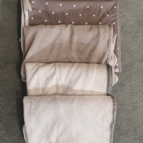 Vahakankainen alusta josta ei kosteus mene läpi. Siihen päälle 4 kpl ikean kankaista suojaa ja tavallinen ohut vaipanvaihto alusta.