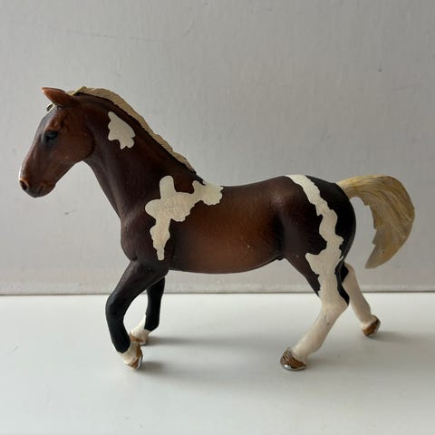 Valkoinen Schleich hevonen. Trakehnenin tamma. Toisen puolen kyljessä on hieman kulumaa, muuten hyvässä kunnossa.