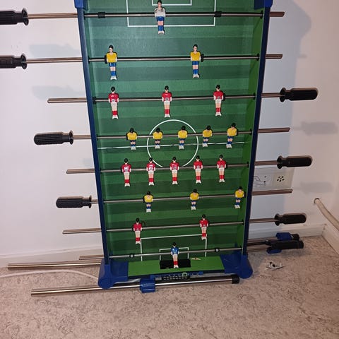 Myydään hyväkuntoinen pöytä jalkapallo peli. Pelilaudan päissä numerot pisteiden laskua vartan. Mukaan kaksi jalkapalloa.