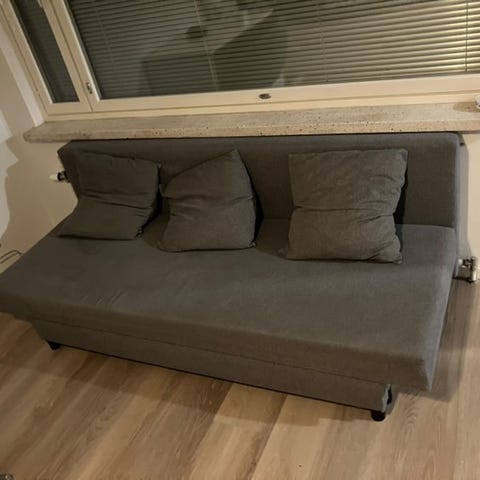 3-istuttava Jyskin vuodesohva. Muunnettavissa helposti sängyksi. Makuuala 116x192 cm. Leveys 192 x Korkeus 89 x Syvyys 92 cm.