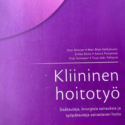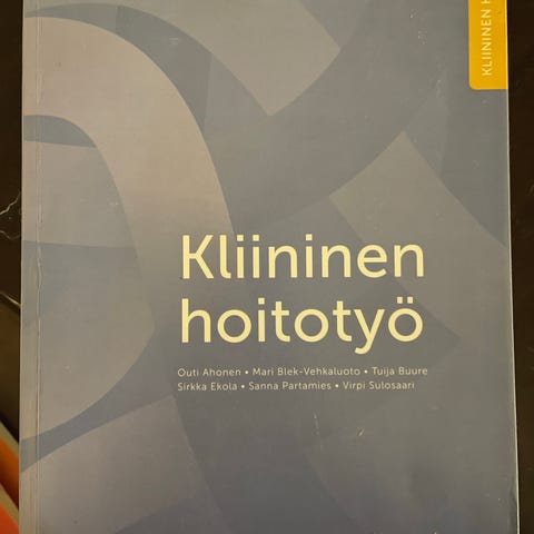 Sanoma Pro Kliininen hoitotyö -oppikirja, joka kattaa kliinisen hoitotyön keskeiset osa-alueet. Uutta vastaavassa kunnossa, ei merkintöjä tai sivujen taittumista. Ollut sairaanhoityön tutkinnossa kokoajan mukana.
