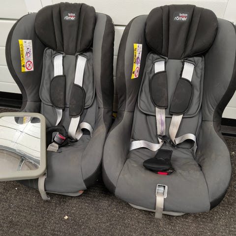 Kolme vuotta sitten ostettu. Kolaroimaton ja hyväkuntoinen. Istuinta ei ole nyt hiljattain pesty. Pääntuen styroksi halki. Tämä ei vaikuta käyttöön eikä turvallisuuteen. Pysyy kasassa päällyskankaan avulla mutta toki voi myös liimata kiinni/vaihtaa. Kyseessä ei tosiaan ole sivutörmäyssuoja vaan päätä mukavammin pitävä osa.