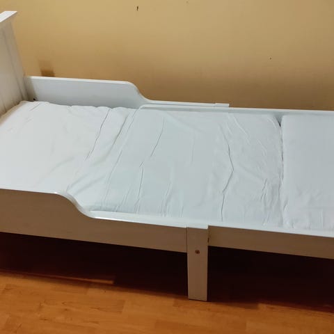 Erittäin hyvässä kunnossa oleva lasten jatkettava sänky. Mukaan patja, peitot ja lakanat.