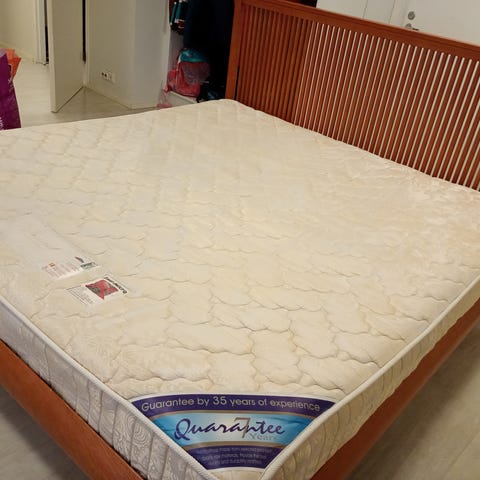 Patja erittäin painava futon-tyylinen todella laadukas, mutta 10+ vuotta ikää molemmilla (sänky ja patja). Patja edelleen hyvä nukkua, hyvin huolta pidetty. Todella halvalla uuteen kotiin.
