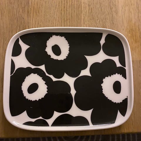 Marimekon Unikko-lautanen.
