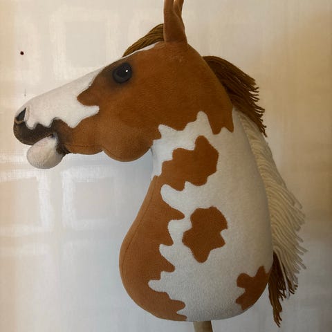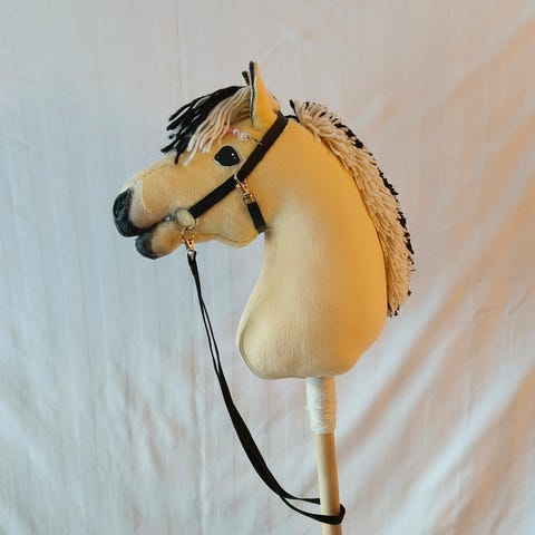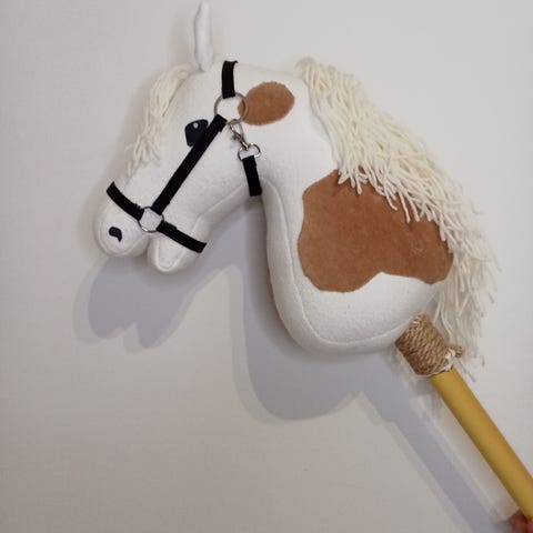 Kouluratsastukseen suunniteltu käsin tehty keppihevonen. Keppari on täysin käyttämätön ja uusi.