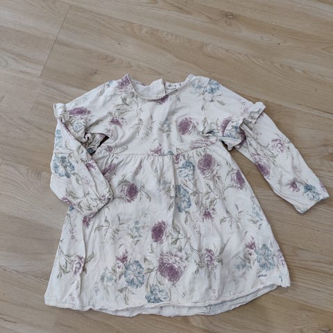 Kaunis kukkamekko koossa 100cm sekä kaksi hametta, Newbien violetti 98cm ja vaalea roosa 110/116cm