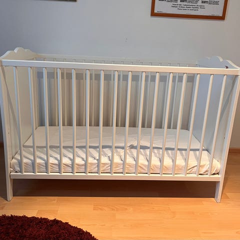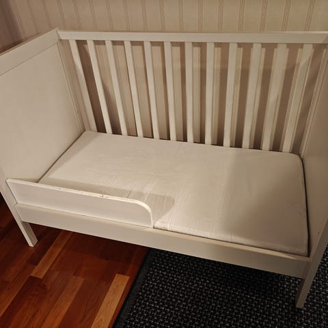 Pinnasänky kahdella laatikolla. Laatikot alunperin pinkit, nyt päällystetty valkoisella kontaktimuovilla. Voin tarvittaessa asentaa toisen puolen pinnaseinämän takaisin paikoilleen. Patjan korkeus säädettävissä ylemmäs. P125xL65xK86