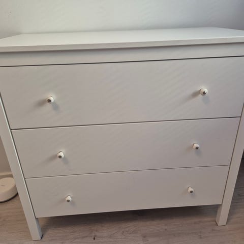 Elämää nähnyt lipasto :) pieniä jälkiä siellä täällä, plus poikani nerokas idea superliimata nuppi tuohon päälle :D