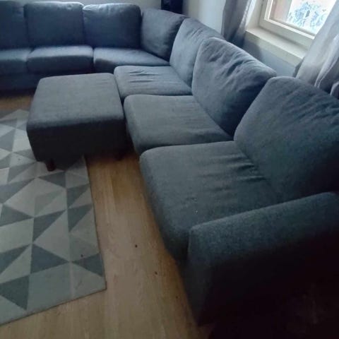 Tammikuussa ostettu sohva. Pari lapsen mehu läiskää jotka varmasti lähtevät pesussa pois.