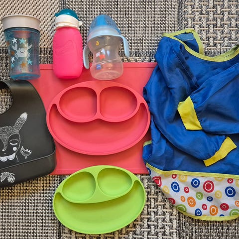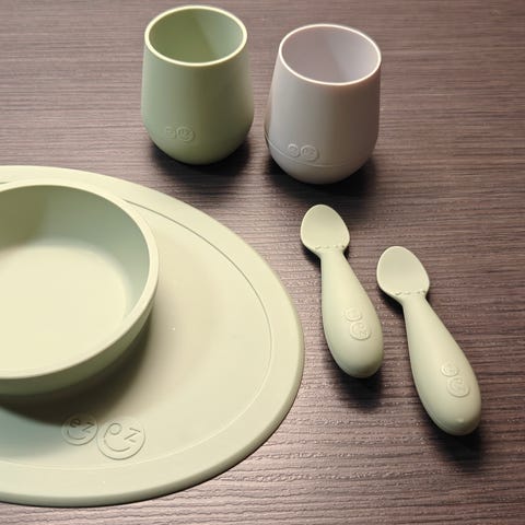 Setti ruokailuvälineitä vauvalle tai taaperolle.