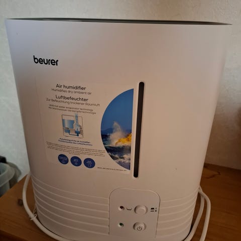 Beurer GmbH, 220-240V, power 365W. typ LB 55. Kaksi tehoa, säiliö vettä riittää noin vuorokaudeksi.