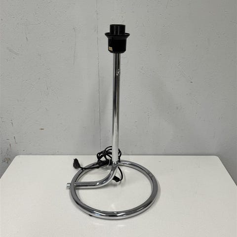 Pöytävalaisin, jossa on harmaa harueristin jalka ja vaalea varjostin, neliön muotoinen. Valaisimen jalassa on läpivienti johdolle, mikä antaa sille modernin ilmeen. Pohjassa tarra Aris sekä numeromerkintä.Varjostimessa tummentuma, muuten ehjä.