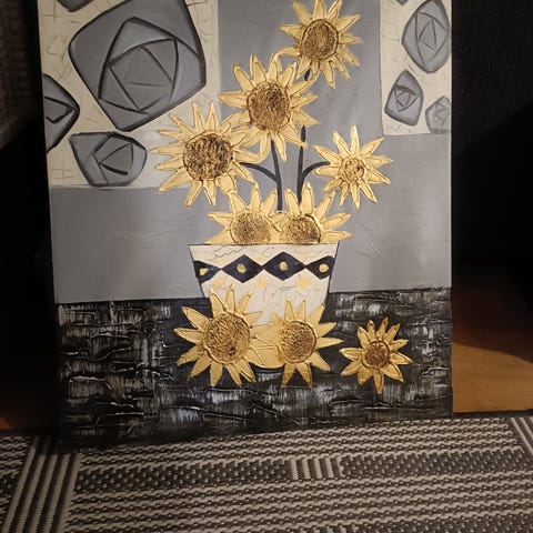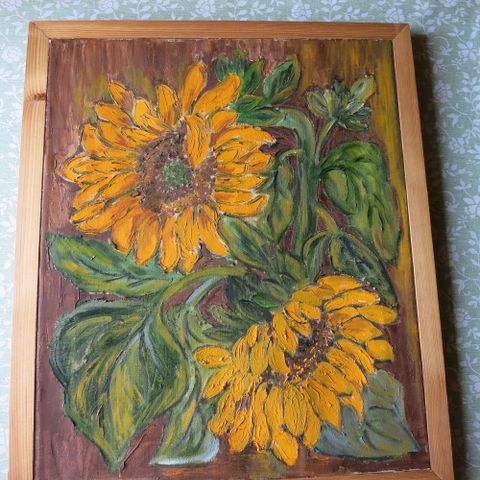 Myydään kuvan mukainen uniikki auringonkukat / keltaiset kukat akryylivärimaalaus -taulu.