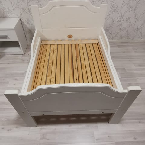 Unipuu yhden hengen sänky valkoisella värityksellä ja vaaleanpunaisella lisälaita-palalla. Sängyn pinnassa on vähän käytön jälkiä ja pieniä naarmuja. Patjan koko 80x200cm (ei kuulu kauppaan). Perus siisti sänky seuraavalle, suurinosa kuvassa olevista tarroista poistettu. Nouto Ahtiala.