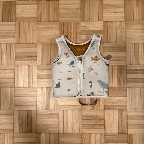 Myydään kelluttava lasten uimaliivi kokoa M 18-30kg lapselle. Liivissä irroitettavat kellukkeet joita voi säätää taitotason mukaan.