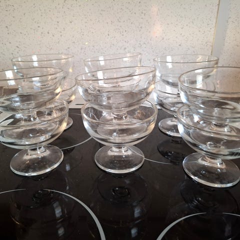 Myynnissä siniset jälkiruokamaljat joita löytyy 4 kpl ,ovat hyvässä kunnossa