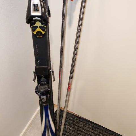 Salomon laskettelusukset 140cm, monot 25cm ja sauvat 115cm