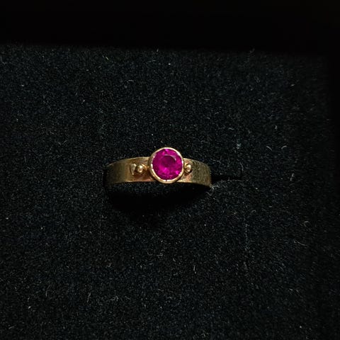 Kaunis sydämen muotoinen kultainen (585) sormus, joka on kokoa 16. Sydämen keskellä kiiltelee pieni timantti tai kivi, jonka laadusta minulla ei ole tarkempaa tietoa.