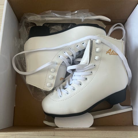 Alissa Muu luistelu lasten luistimet, koko 34, valkoinen väri. Hyvä käytetty kunto. Hyvä teroittaa ennen käyttöä.