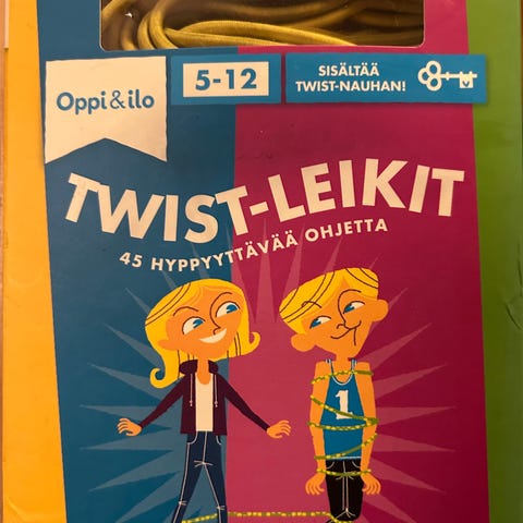 Myydään Oppi & ilo Twist-leikit. Hyppää, leiki ja loiki! Sisältää twist-kuminauhan ja 43 hyppyyttävää ohjetta.