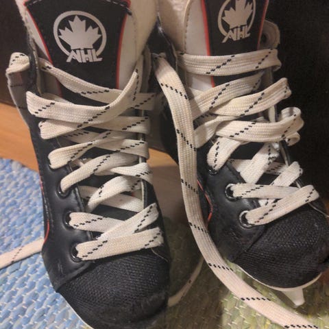 NHL merkkiset lasten hokkarit, koko 28. Hyvässä kunnossa myös terien osalta.