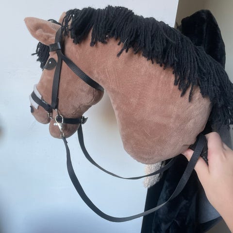 Käytettynä ostettu keppihevonen vielä hyvässä kunnossa etsii uutta kotia. Kuvan suitset tulee mukaan ja jos haluaa voin laittaa riimun mukaan. Merkkiä en tiedä🫶🏻