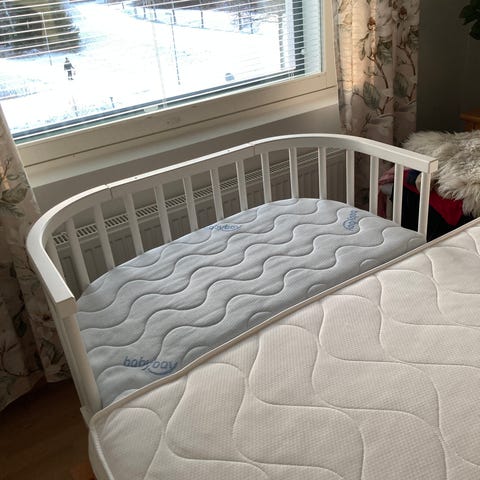 Emma-merkkinen sivuvaunusänky. Kunto moitteeton. Patja tahraton, käytetty patjansuojusta. Säädettävä korkeus, keinutusominaisuus. Hajusteeton ja savuton koti, ei lemmikkejä. Vain nouto Savolanniemestä.
