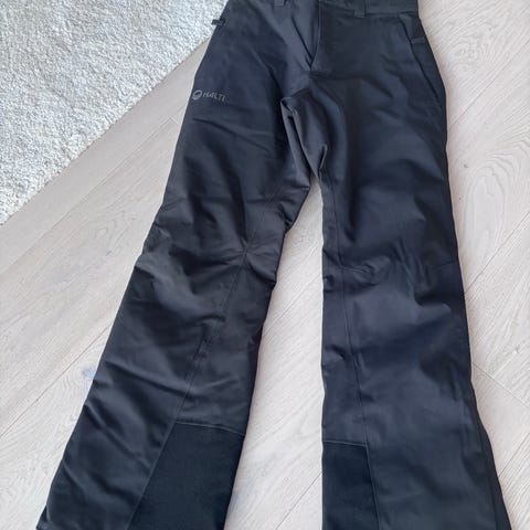 Hyväkuntoiset, muutaman kerran päällä olleet Halti lasketteluhousut. Lahkeissa kovikkeet. Henkselit saa irti. Veden ja tuulenpitävät. Housuja ei ole kertaakaan pesty. Koko 40, vastaa paremmin 38.