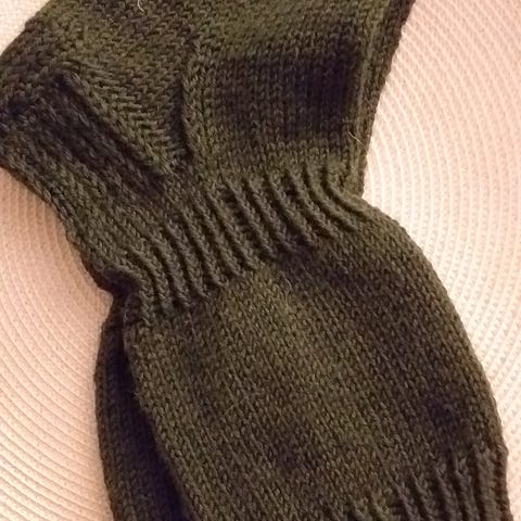 Paksuhkosta villasekoitalangasta sukat, vahvistettu kantapää.